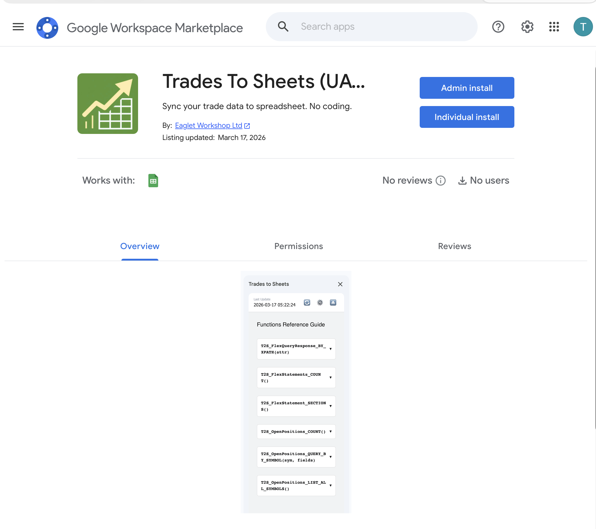 1. Visit the Marketplace Go to the Google Workspace Marketplace and search for "Trades to Sheets".