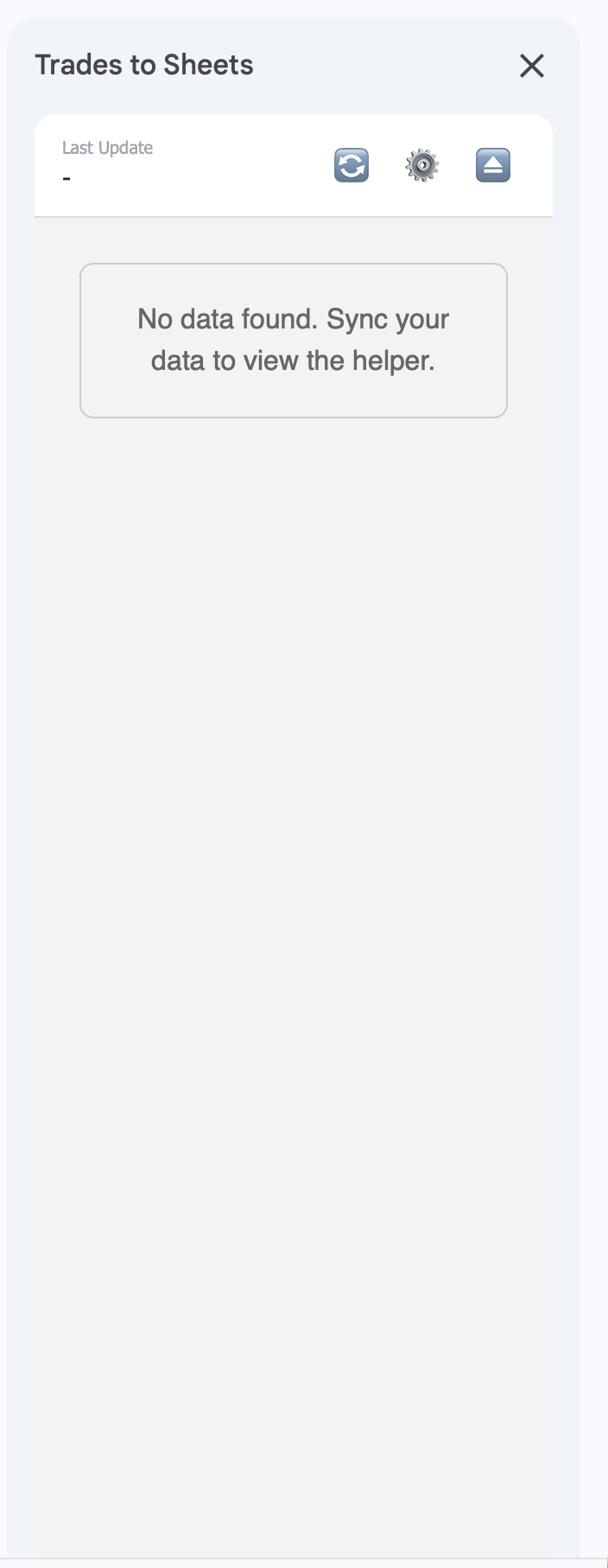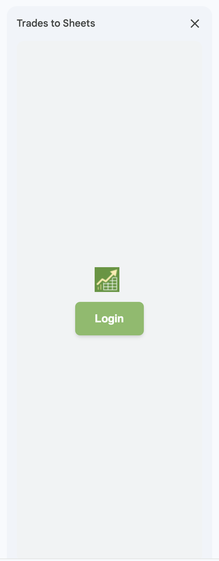 - Login: Open the Add-On sidebar in Google Sheets and log in using your Trades to Sheets credentials.